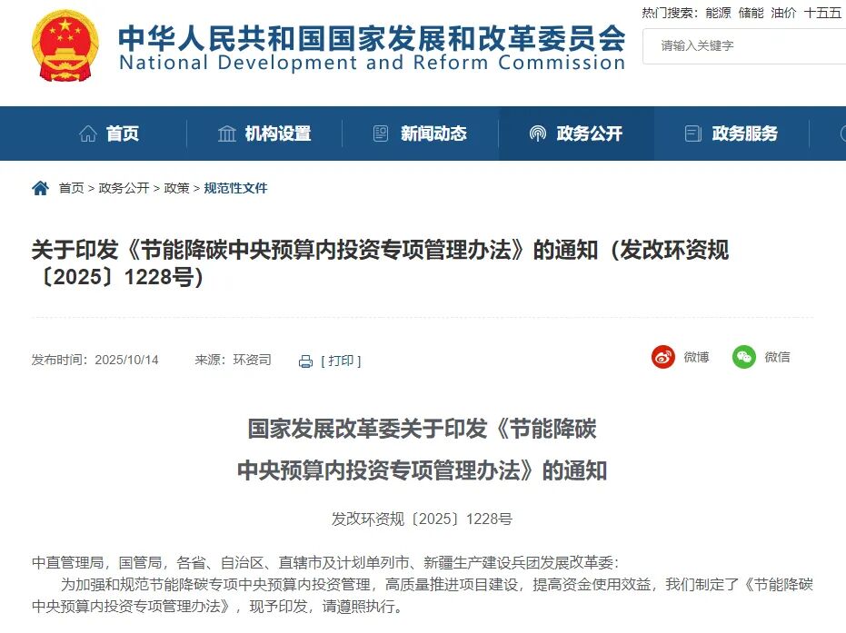 日前,为加强和规范节能降碳专项中央预算内投资管理,高质量推进项目建设,提高资金使用效益,国家发展改革委制定并印发《节能降碳中央预算内投资专项管理办法》(以下简称“办法”)。